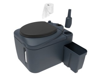 Туалет оснащён держателем для туалетной бумаги, который фиксирует рулон и свободно вращается вместе с ним. Диаметр вентиляционных труб составляет 50 мм, отверстие в корпусе закрыто герметичной манжетой. Требуется приобрести только трубу нужной длины, в зависимости от места установки.