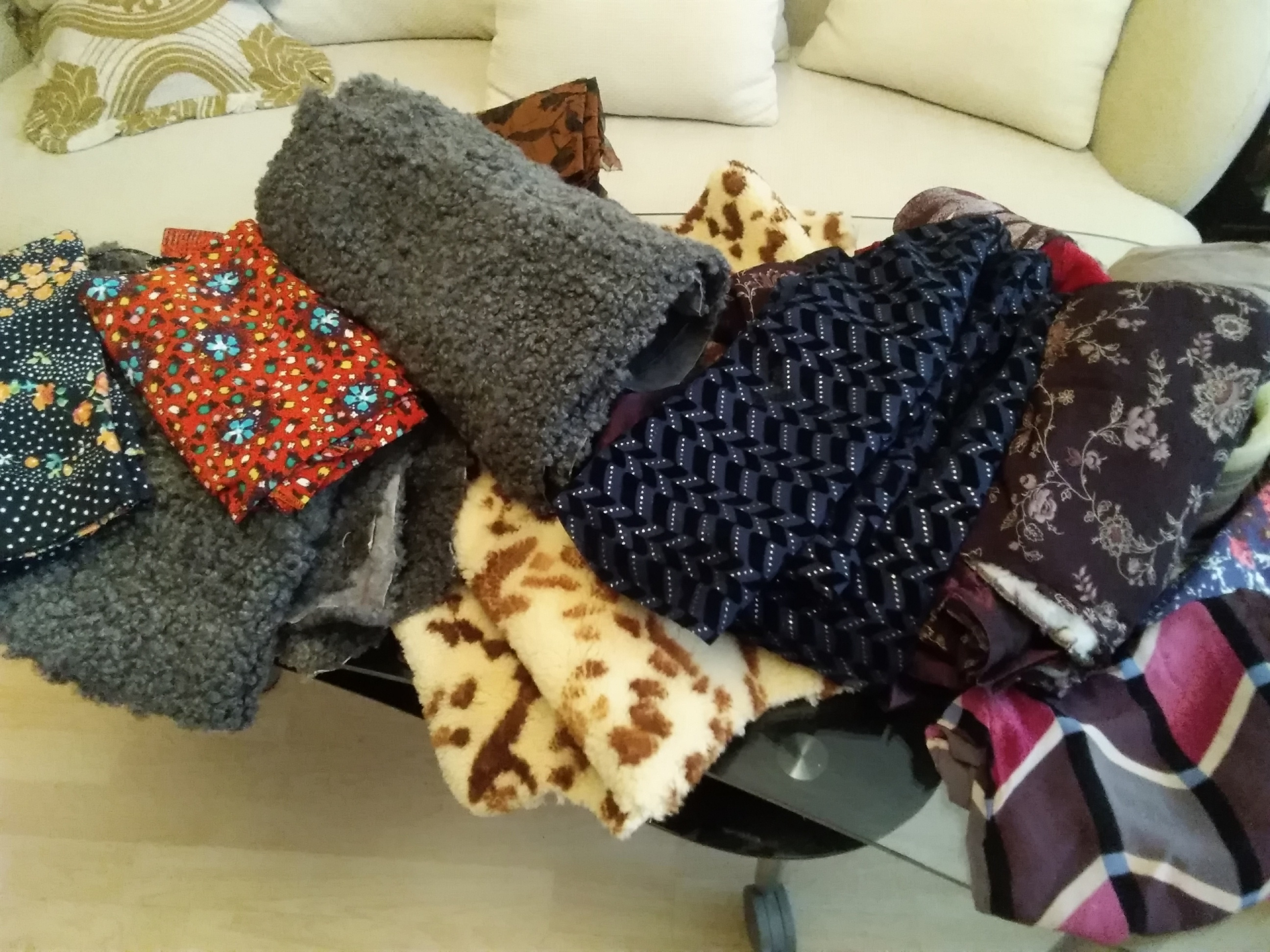 Отдам разные куски тканей. обрезки тем, кто занимается шитьём лежанок для бездомных животных