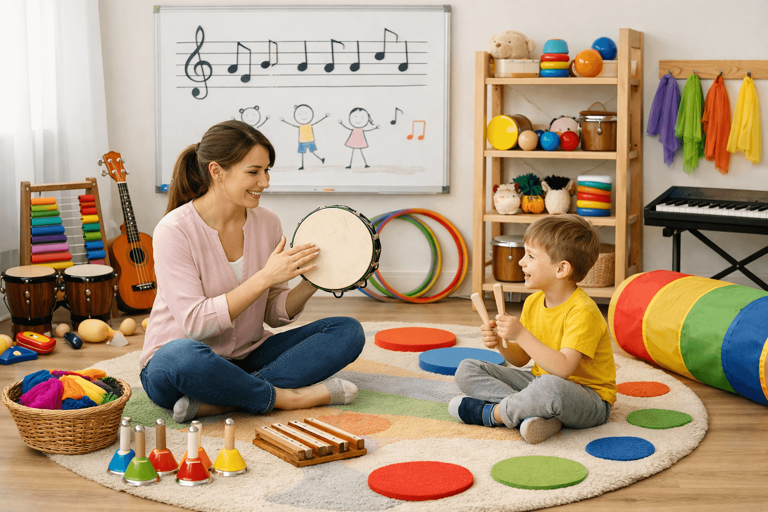 С помощью игры на музыкальных инструментах развиваются внимание, слуховое восприятие, эмоциональная регуляция, и коммуникативные навыки.
