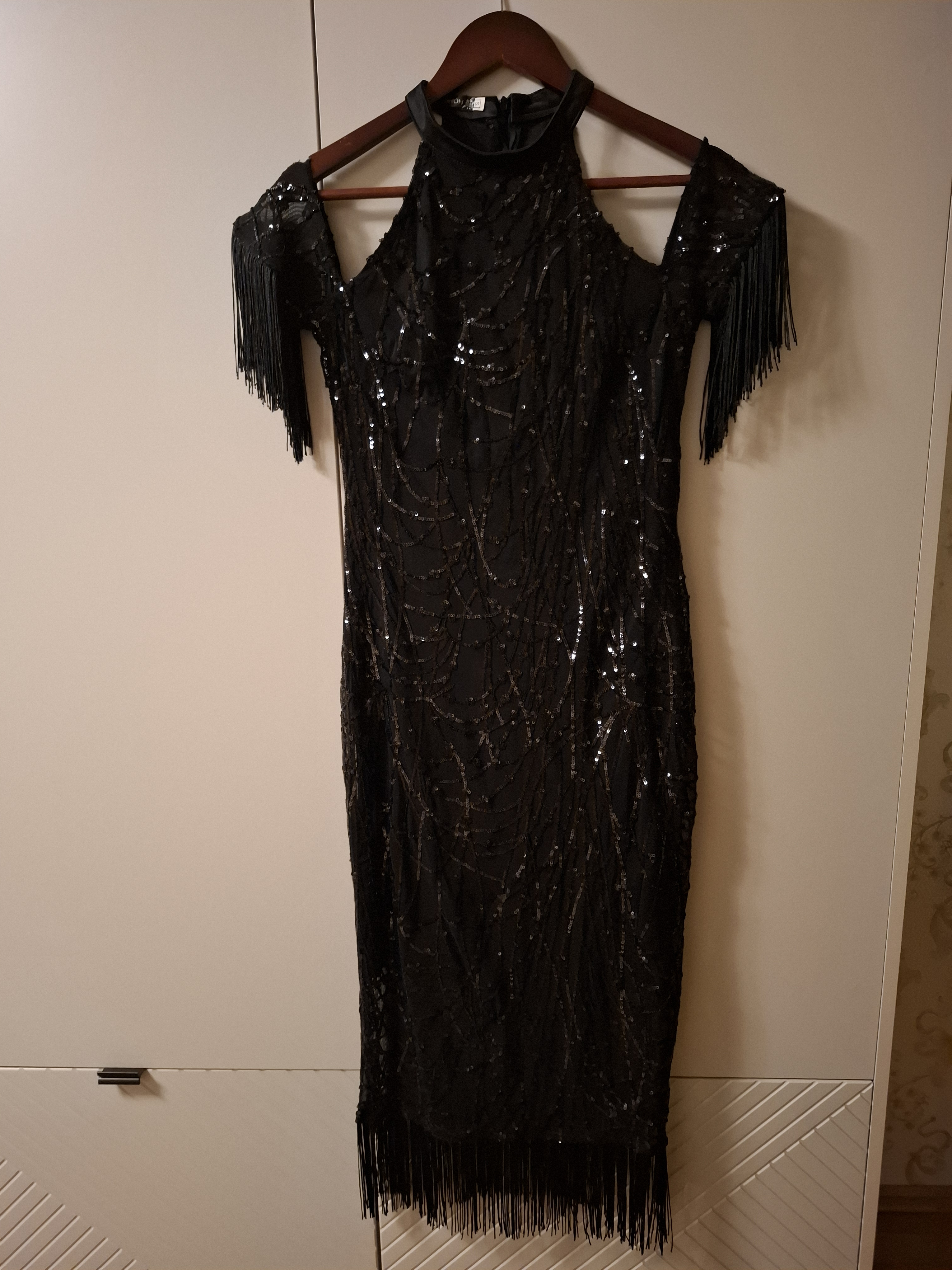 Очень красивое, почти новое, в отличном состоянии вечернее чёрное платье. Размер 36/S, ниже колен, открытве плечи.