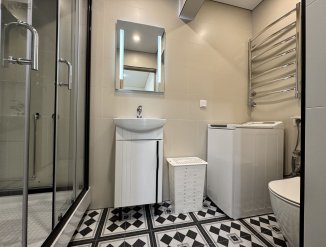 В стоимость входит полностью готовая ванная комната с сантехникой.
