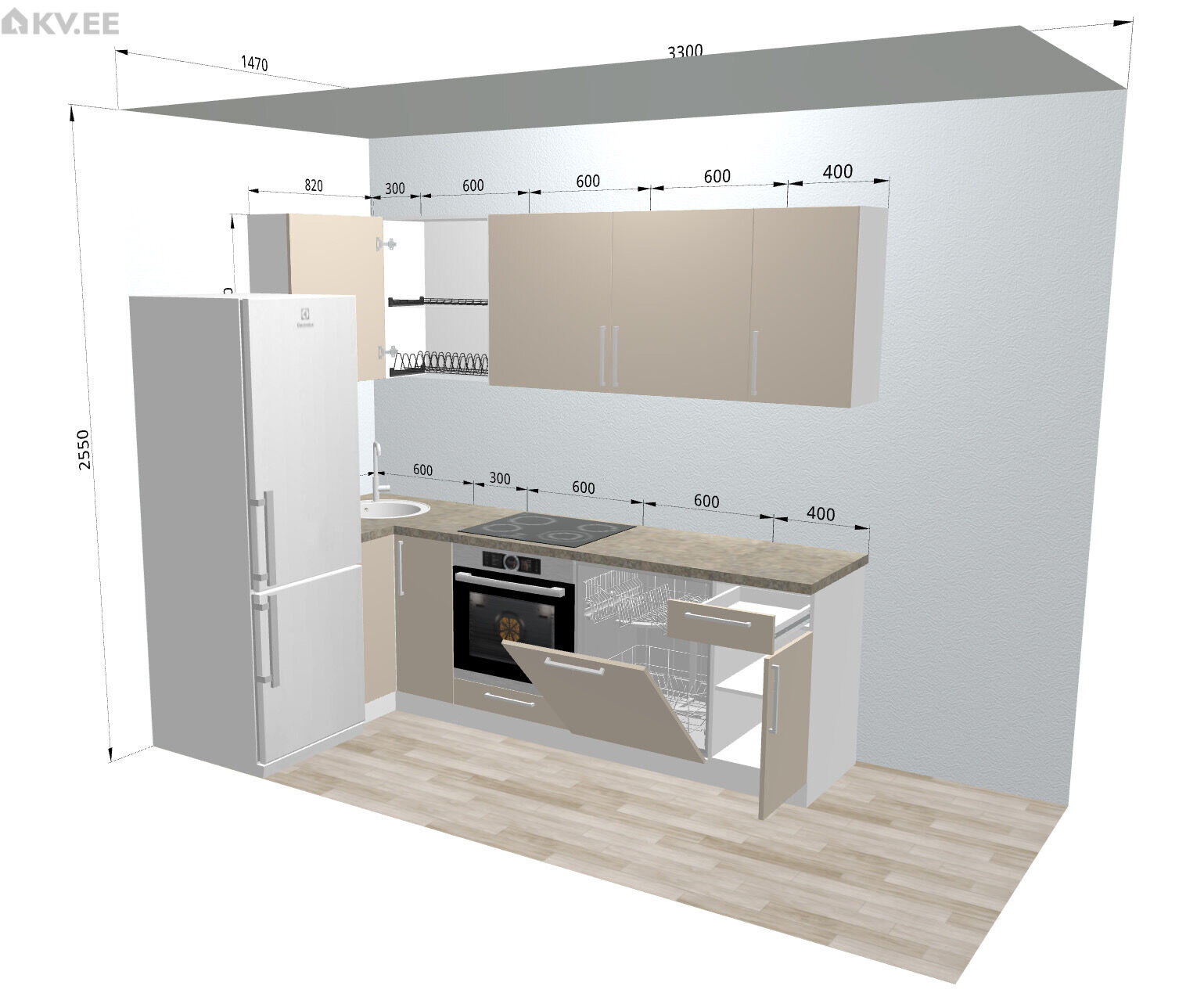 На кухне предусмотрены подключения для посудомоечной машины, а также установлен кабель повышенной мощности для плиты и духового шкафа. Для верхнего ряда кухонных шкафов предусмотрена дополнительная подсветка.