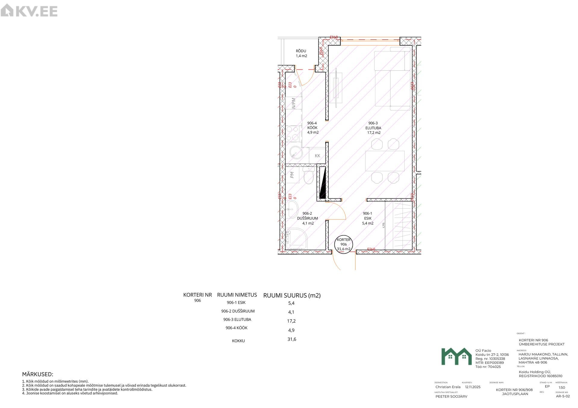 - Общая площадь: 31,6 м2