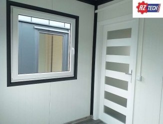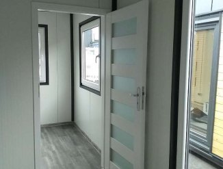 Пол: сэндвич-панель EPS толщиной 100 мм и теплопроницаемостью 0,38 Вт/м2К, дополнительный пол OSB и ПВХ древовидный. Дополнительные перегородки.