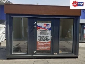 Утепленный павильйон из сэндвич-панелей 1 класса наружными размерами 4,00 х 2,50 м, внутренней высотой 2,50 м, уклоном 2,40 м.