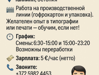 📌 Cтабильную работу со стабильной заработной платой; от 12 евро 💶 в час 8 часовой рабочий день возможно и договоренность на аккорд (сдельная)