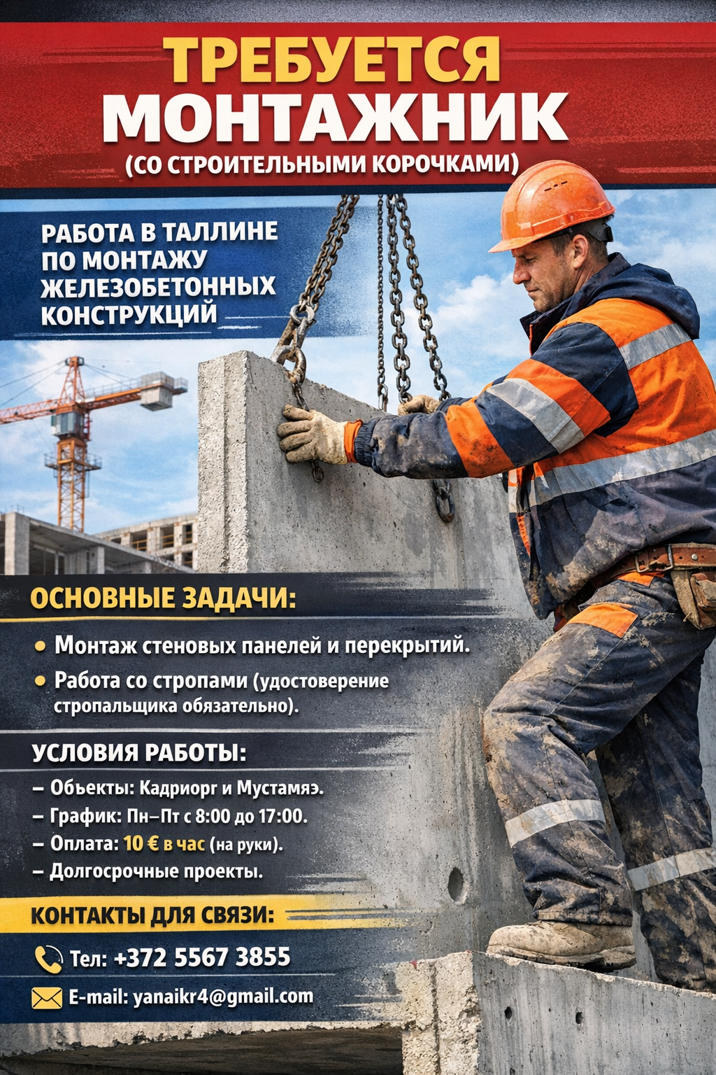 Вакансии, монтажник-стропольщик в Эстония,