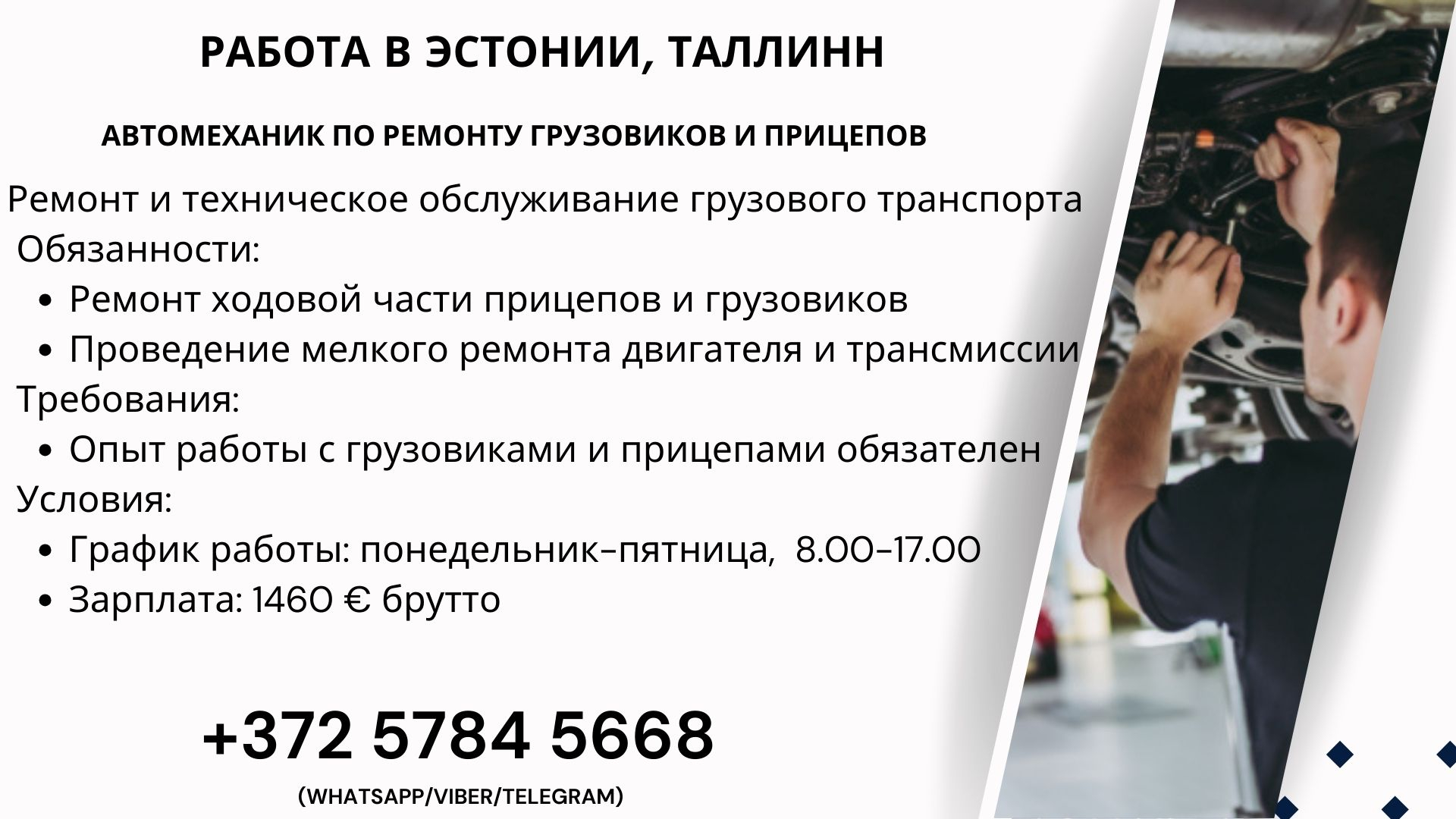 Работа Эстония, Автослесарь грузовых автомобилей в Эстонии, Таллинн