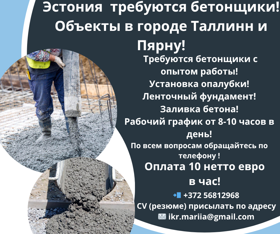 В Эстонию требуются бетонщики с опытом работы!