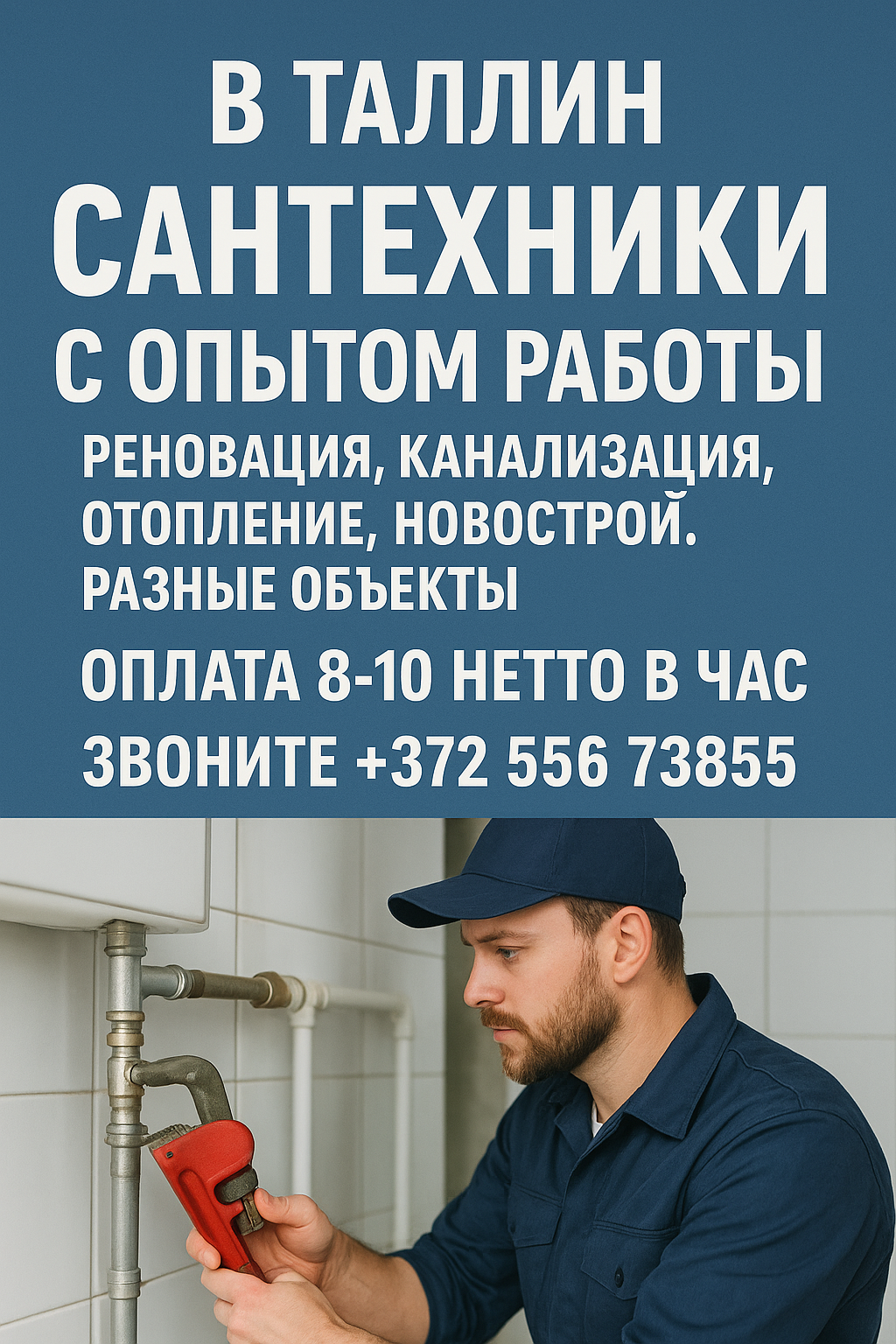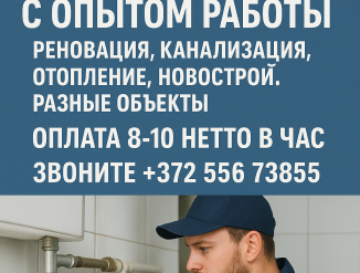Вакансии, Требуется сантехник в Эстонии, Таллинн,