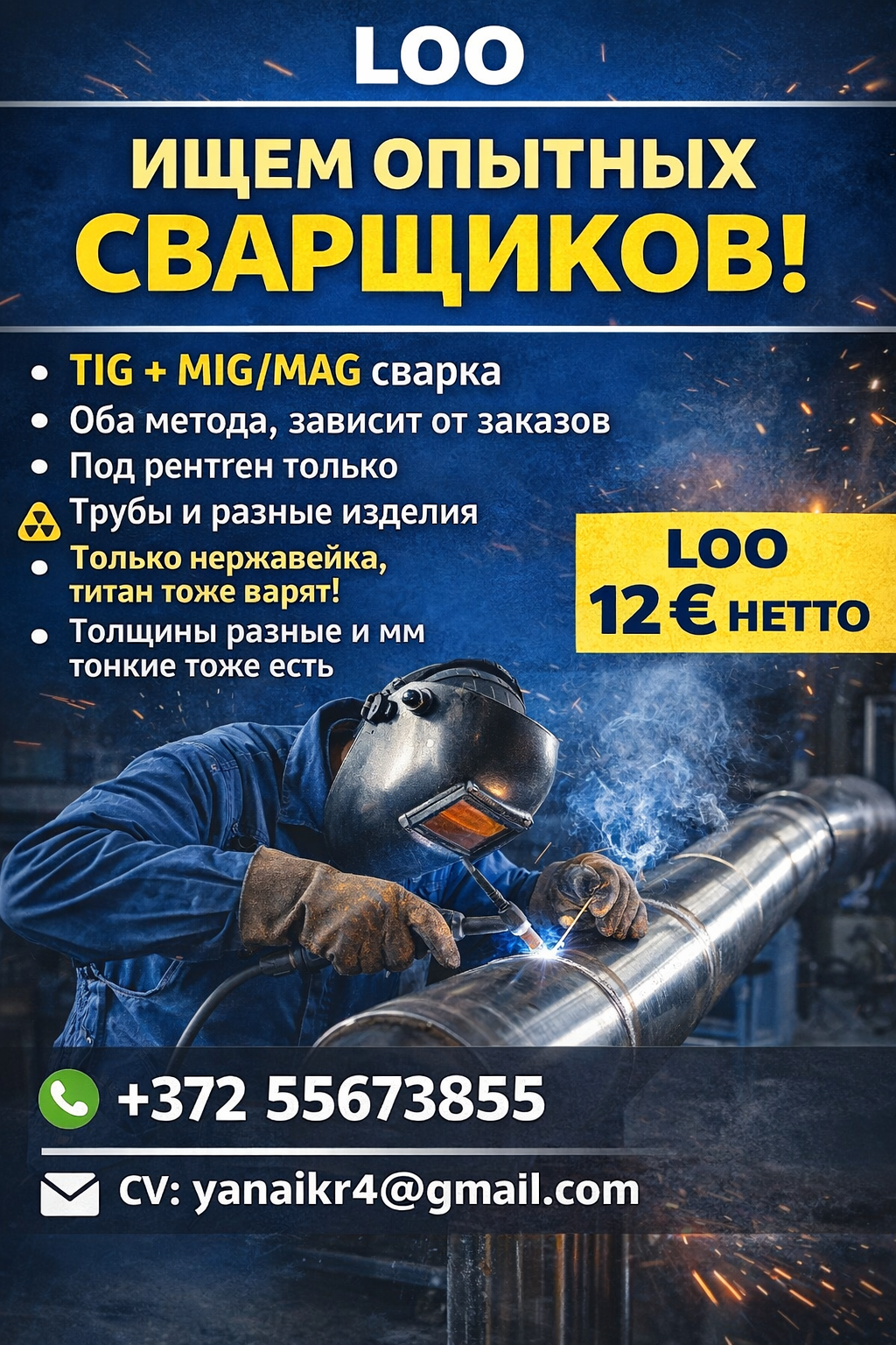 Вакансии, сварщик ТИГ МИГ МАГ в Эстонии, Таллинн,