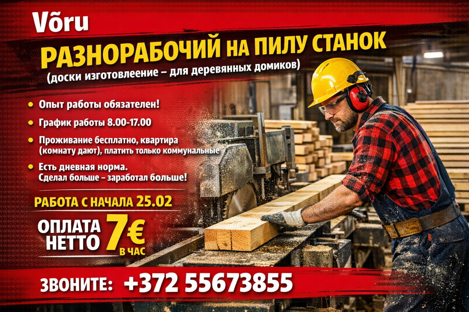 разнорабочий на пилу станок (доски изготовление - для деревянных домиков)