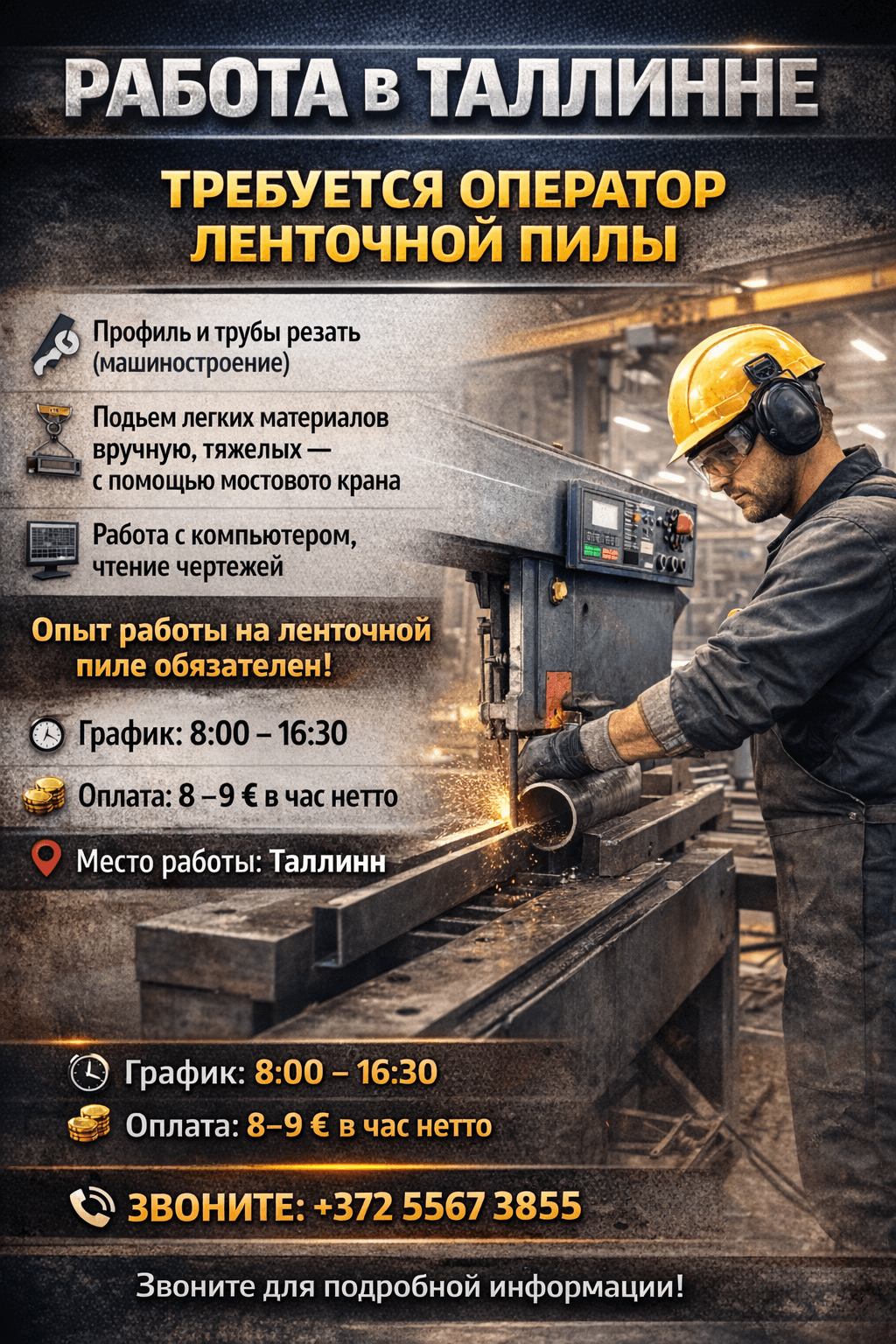 🏗️ Оператор ленточнопильного станка (Таллинн)