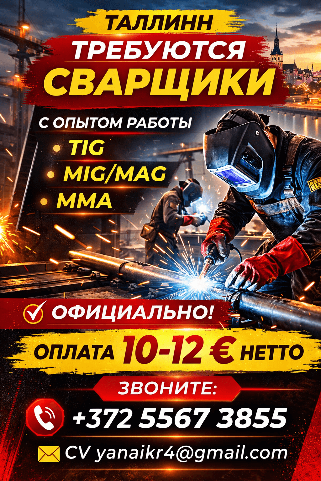 Вакансии, Сварщик ТИГ в Эстонии, Таллинн,