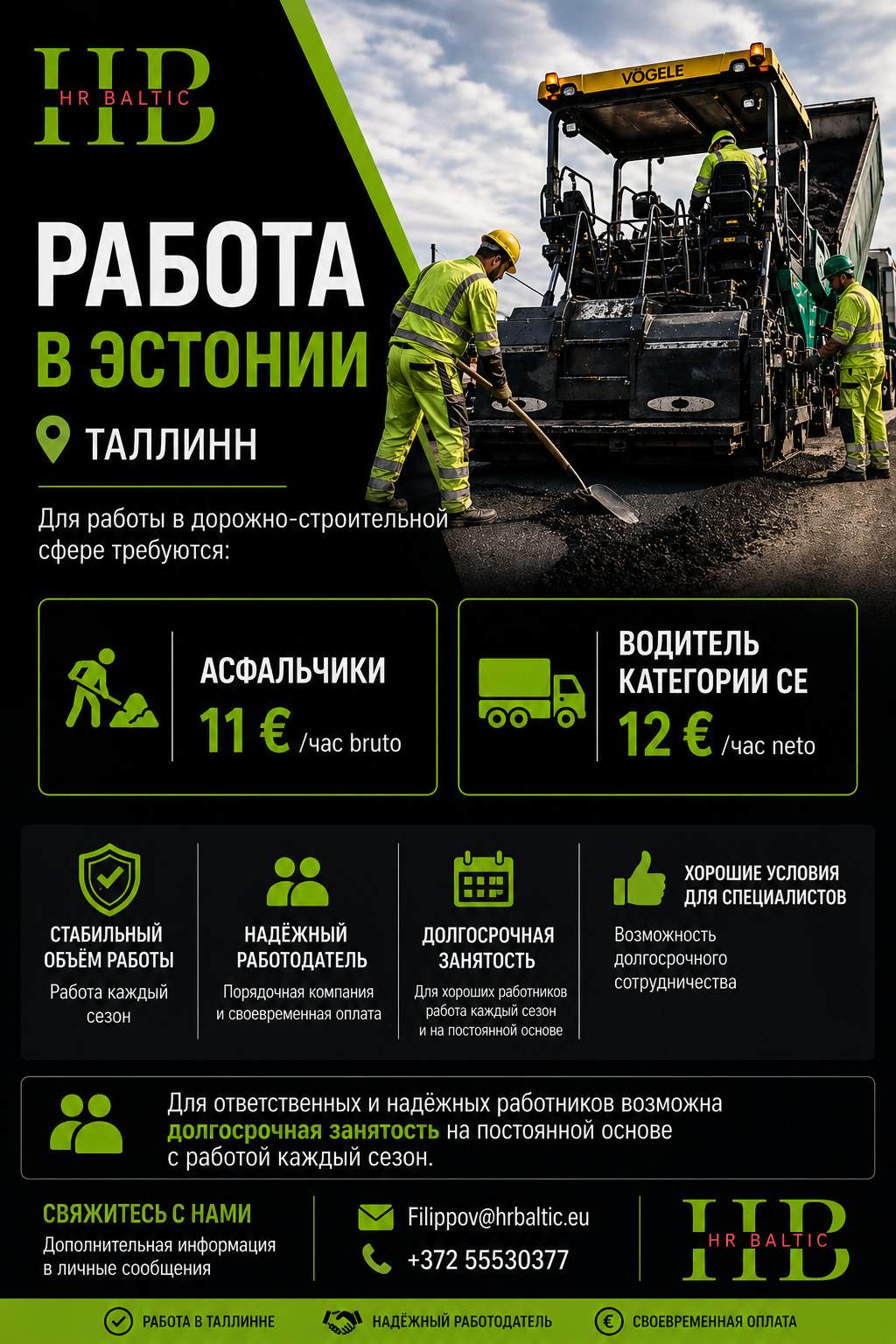 ✅ Асфальтировщики — 11 €/час bruto