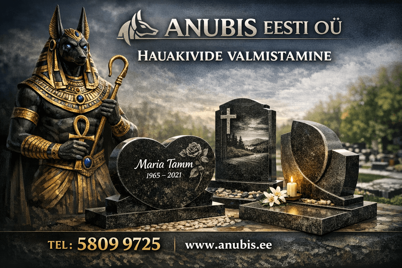 Компания Anubis Eesti OÜ предлагает профессиональное изготовление памятников и надгробий из натурального гранита по всей Эстонии.