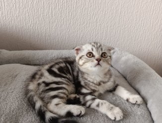 Шотландские котята, редкого мраморного, две девочки и мальчик, окраса ns22, с плюшевой губкой и большими глазами, родились 25 марта, к лотку и когтеточке приучены, проглистованы, самостоятельно кушают. Готовы к переезду в новую семью.